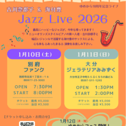 皆さま、お待たせいたしました! 古川奈都子&海付豊 Jazz Live 2026 が、決定いたしました🎶 新春早々、最高にハッピーなジャズが 別府、大分に帰ってきます! 今年2月のライブも大盛り上がりで、 Read more about 古川奈都子&海付豊〜Jazz Live 2026 〜[…]